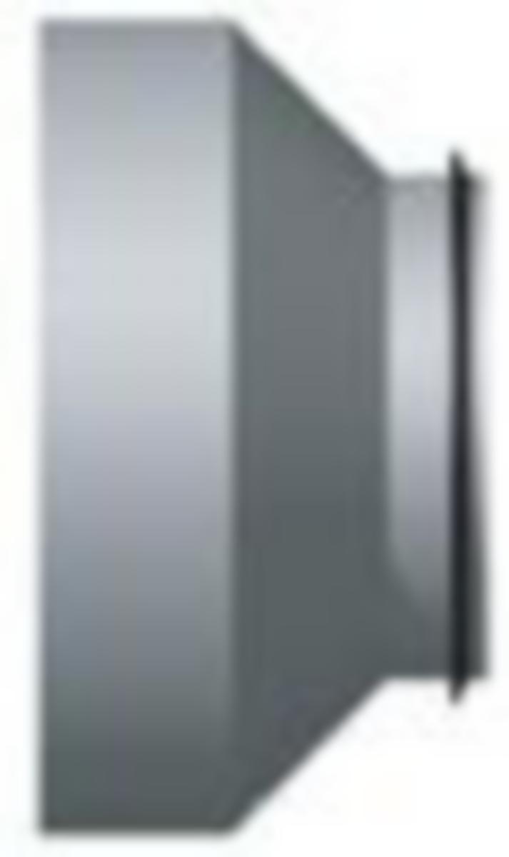 Koncentrisk dimensionsförändring. Påskjutsanslutning (muff) på den större diametern, iskjutsanslutning (nippel) på den mindre. Tillverkad i Aluzink.