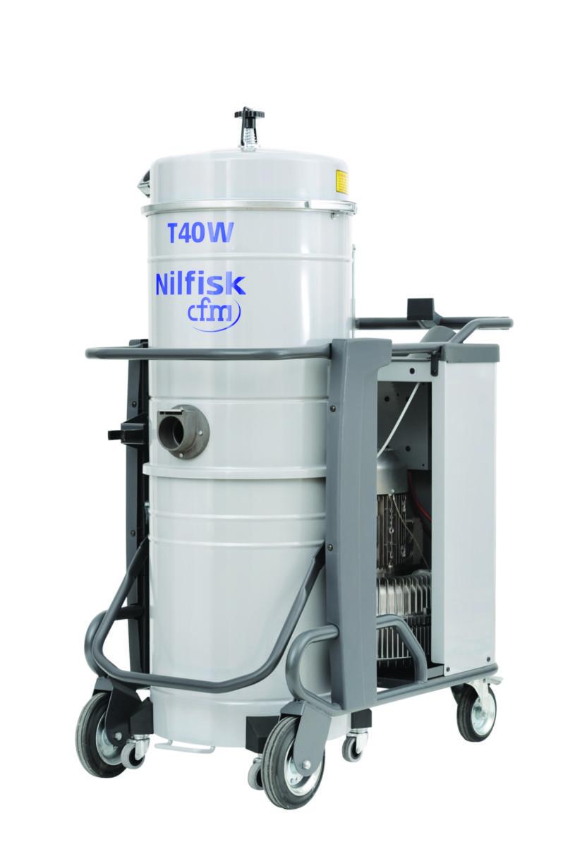 T40W är en industridammsugare för upptagning av stora mängder lätta partiklar. Den finns med 50 eller 100 liters behållare och kan även utrustas med plastsäck GU. (Gravity unload) Komplettera med Hepa-filter och huvudfilter i M-klass. T40W IC är idealisk för upptagning av stora mängder fint damm. T40W kan utrustas med L eller M klass-filter samt HEPA vid upptagning av hälsovådligt material. För stora mängder fint damm som t.ex efter golvslipmaskiner bör man välja T40W IC som är utrustad med M-klassat cartridgefilter och ett automatiskt rengöringssystem, som rengör filtren under användning. T40W IC är utrustad med 100 liters behållare eller kan utrustas med plastsäck (GU) "Gravity Unload". Parallellkopplad sidokanalsfläkt för hög luftmängd. Behållare på hjul för enkel transport till tömning. Manometer som övervakar filtrets kondition. IC "InfiniClean" filterrengöringssystem. IP skyddsklass 55. T40W Plus är en säkerhetsklassad dammsugare godkänd för allt hälsofarligt icke cancerogent damm i klass M