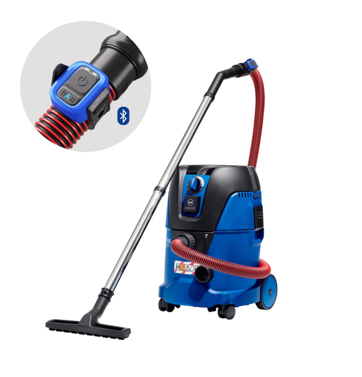 H-Klassad våt-/torrrdammsugare med Push&Clean filterrengöringssystem. Passar till alla uppgifter med uppsamling av hälsofarligt damm i H-klass, inom industri, bygg och liknande. Denna modell är utrustad med en fjärrkontroll som via bluetooth kopplar ihop sig med elverktyg som startas antingen via kontrollen eller via AutoSense-funktionen. Motor, Pmax.: 1500 W. Verktygsadapter med automatisk start/stopp av dammsugaren. Wireless-funktion med bluetooth som kan användas för att starta/stänga av verktyget, antingen automatiskt (AutoSense) eller manuellt. Fördröjd avstängning vid användning av elverktyg. Bekvämt placerad slanganslutning. Två länkhjul och två stora bakhjul. Tillbehörs- och kabelhållare. Standardutrustning: 4,0 m Ø32 mm antistatisk sugslang med rörböj. 2 st 0,5 m förlängningsrör i krom. Golvmunstycke – 30 cm. Verktygsadapter. Fogmunstycke. Möbelmunstycke. Borstmunstycke. Förvaringsbox till mindre verktyg. H-Klassat PTFE-fleece filter – skyddar motorn och din hälsa.