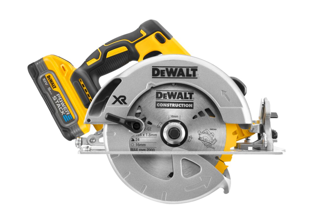 18V XR kolborstfri 184 mm Cirkelsåg. Universell klyv-, kap- och gercirkelsåg för trä och andra byggmaterial. Steglös justering av geringsvinkeln till 57 grader. Skala för exakt skärdjupsinställning till 64 mm. Optimerad balans för säker drift utan påfrestningar. Stabil blockkonstruktion för låga vibrationer och lång livslängd. Extra handtag för säkert arbete med två händer. Direkt kompatibilitet med DEWALT AirLock-system för enkel och säker anslutning till utsugsslang. Dammblåsaren tar bort damm och skräp från såglinjen. LED-arbetsbelysning för bättre sikt över såglinjen. Levereras med 1 x 4A laddare, 2 x DCBP518 5.0Ah POWERSTACK batterier, 24T-klinga, AirLock adapter-fäste, klingnyckel och klyvanslag i en TSTAK VI förvaringslåda.