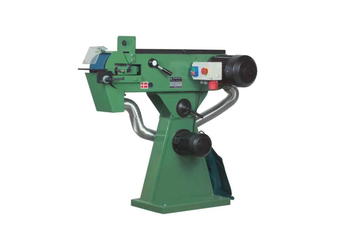 Bandslipmaskin med inbyggd dubbel utsugning, dammpåse, slipband 150x2 000 mm kornstorlek 60, snabbt bandbyte utan verktyg, strömbrytare med separat nödstopp, motorbroms, 4,8 hk motor, bandhastighet 30 m/s, 5-årig motorgaranti, 114 kg, 3x400 V, 50 Hz.