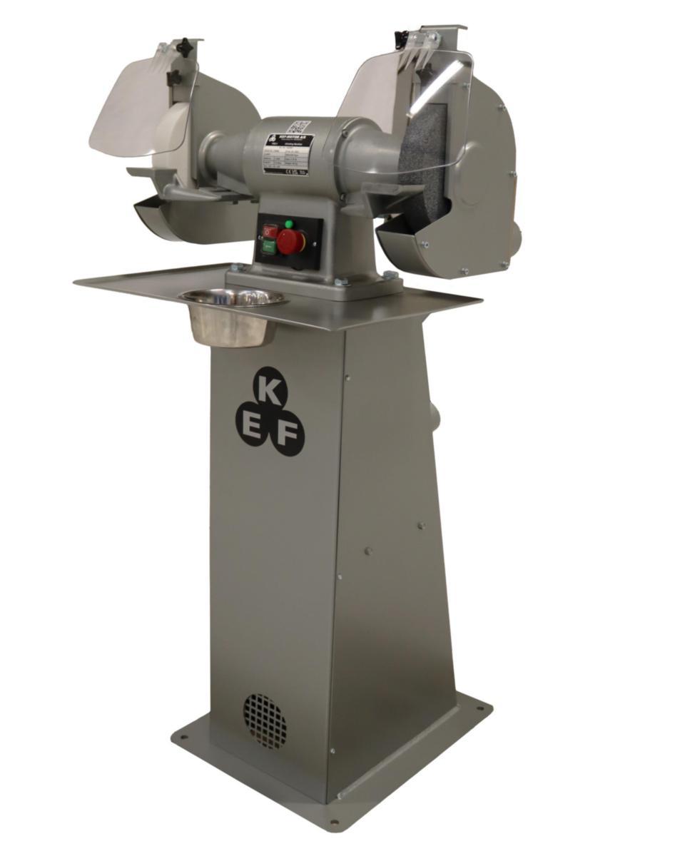 Industribänkslipmaskin på EX-16-pelare inbyggt dubbelt utsug, 2 slipskivor 200x38x20 mm ädel korund 60 och normal korund 60, kraftiga slipsystem av gjutgods, stora inställbara ögonskydd, separat nödstopp, 1 100 W motor, 5-årig motorgaranti.