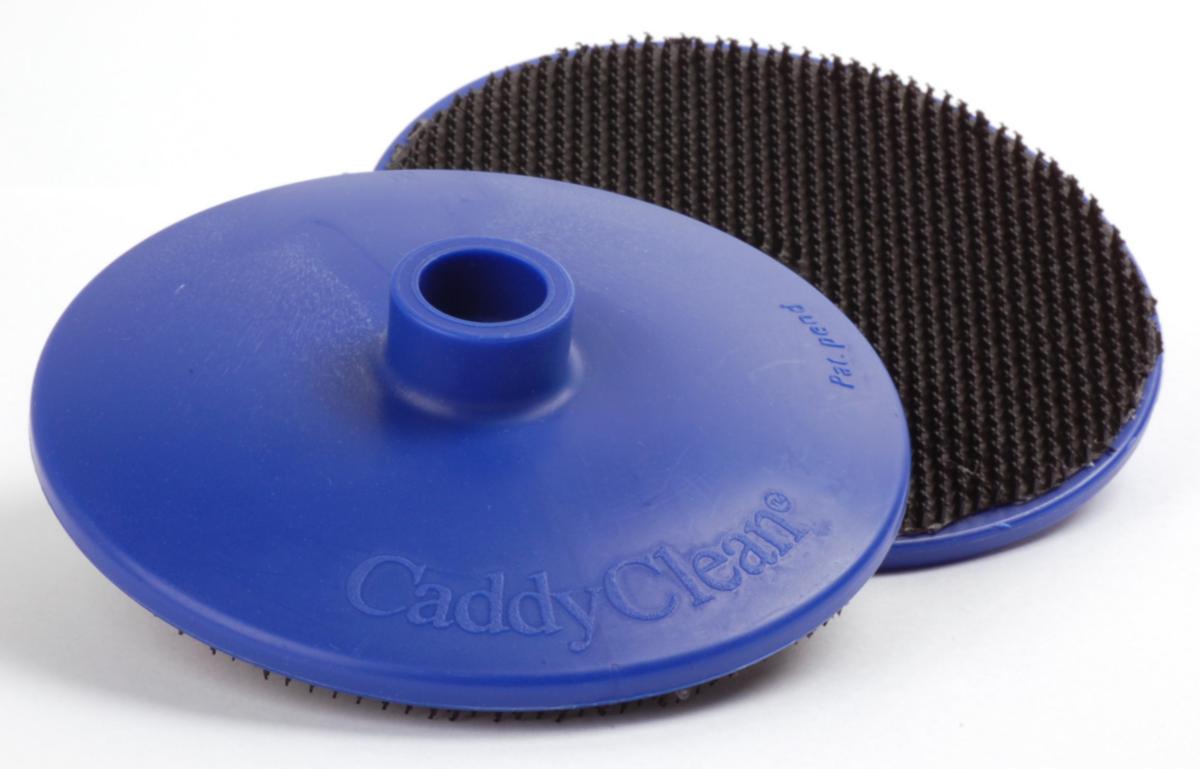Rondellhållare i plast (blå). Med kardborrfunktion för att fästa rondeller, microfiber-rondeller etc. Enkelt snäppfäste för att applicera på motorenheten.