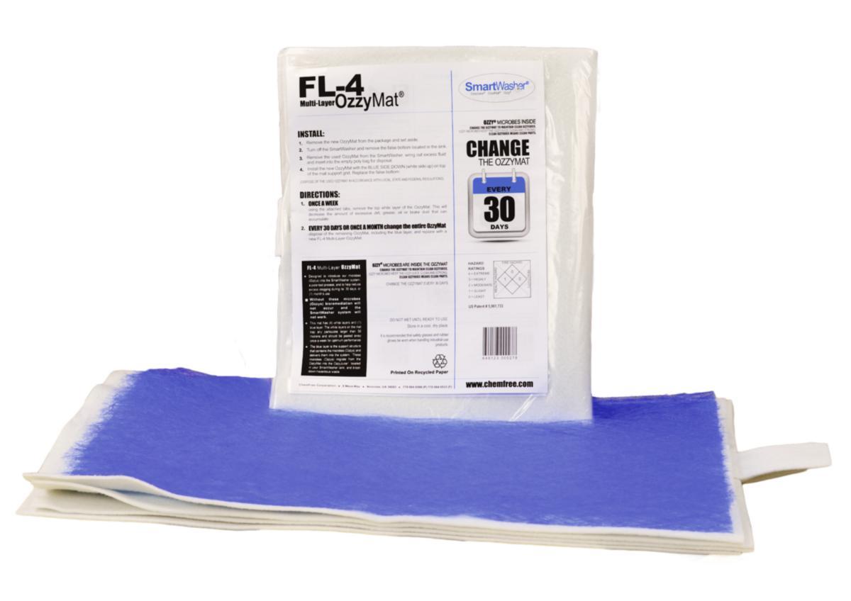 OzzyMat- FL-4 fångar stora partiklar av fett och olja som rengörs från smutsiga delar, tillsammans med ytterligare partiklar som är större än 50 mikron. För att få bästa rengöringseffekt i din SmartWasher smådelstvätt ska du byta ut ditt filter var 30:e dag.