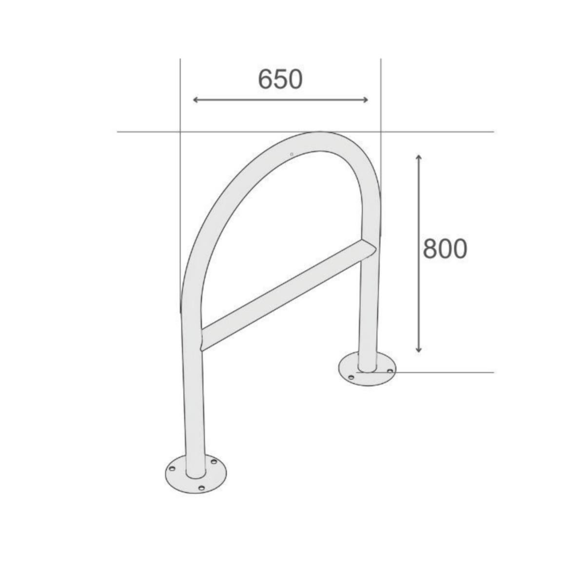 Stället har en välvd form med en horisontell stång i mitten. Denna stång håller cykellåsen på en bekväm höjd, så att de inte faller till marken när cykeln låses. Ställningen är 1150 mm hög före installationen och står 800 mm ovan marken när den är installerad.