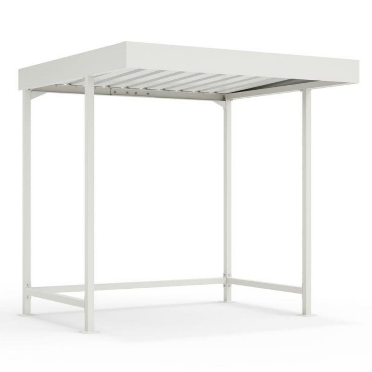 Metalltaket är fäst på tre sidor och låter regnvatten rinna bakåt. Regnrännor och stuprör finns som tillbehör. Väderskydd RL finns med takdjup på 2 200 mm eller 4 400 mm.