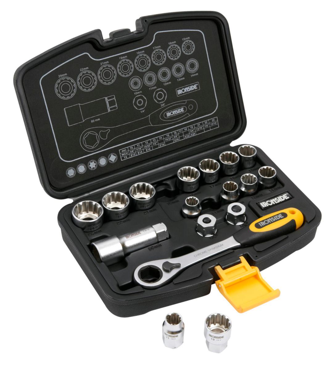 Hylsnyckelsats Ironside m genomgående hylsor, 17 delar