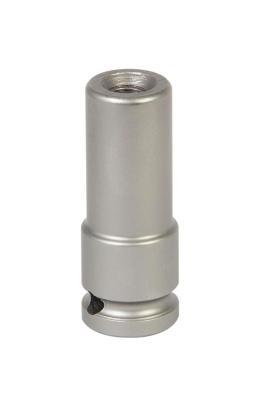 Pinnbultshylsa med 1/2" fyrkantfäste. För montering av pinnbultar. Finns med både M-gänga alt. tumgänga. Genomgående hål för låsning på maskinens drivtapp. Tillverkad i härdat stål med ytbehandling Momento SilverLine™.