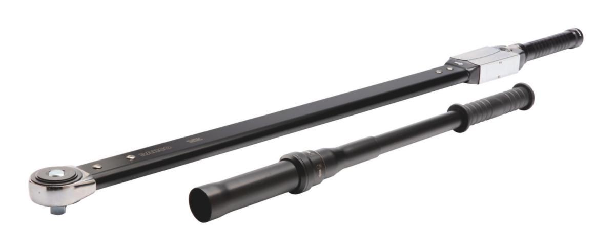 Mekanisk förinställd momentklicknyckel med fast spärrhuvud och valfritt handgrepp. Inte längdberoende, så kan användas med eller utan det medföljande förlängningshandtaget (tillval för 650 Nm). Området omfattar momentvärden från 130 till 1 500 Nm/100 till 1 100 ft.lb. Kan användas med- eller moturs genom att trycka över spärrhuvudets fyrkantstapp. Noggrannhet ±3 % för inställning, vilket överträffar kraven i ISO6789-1:2017. Mycket tydlig momentsignal från den unika mekanismen. Spärrhuvuden med genomgående hål som medger användning medurs och moturs. Förlängningshandtag minskar användarens ansträngning för att uppnå höga momentvärden. Allt i en bärbar, robust och formsprutad väska. Förinställda nycklar kan på begäran ställas in och certifieras med en försäkran om överensstämmelse. ISO 6789. Tillverkade i Storbritannien.