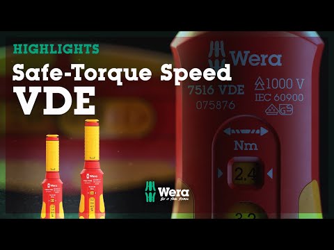 KK VDE-sats med 23 delar. 1 Safe-Torque Speed momentskruvmejsel 7508 VDE med fem valbara maximala åtdragningsmoment (0,4; 0,8; 1,2; 1,6; 2,0 Nm), 1 Safe-Torque Speed momentskruvmejsel 7516 VDE med fem valbara maximala åtdragningsmoment (2,4; 2,8; 3,2; 3,6; 4,0 Nm), båda med ett fast läge (Torque Lock) för obegränsat lossnings-/åtdragningsmoment, numerisk momentindikering, tillförlitlig slirning när inställt moment har uppnåtts, 1 handhållare 817 VDE. momentskruvmejsel och handhållare endast för Wera VDE-växelklingor. 20 VDE-växelklingor (157 mm långa) med verktygsväljare Take it easy: färgkodning efter profil samt lasergraverad storleksmärkning, övervägande med reducerad klingdiameter, som gör det enkelt att komma åt djupt liggande skruvar och fjädrar. I robust textilbox för skyddad förvaring och praktisk transport.