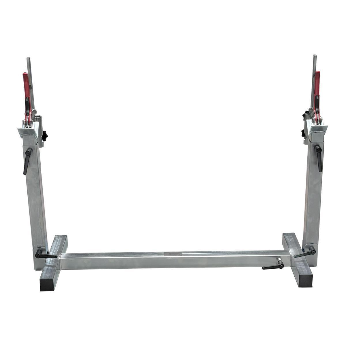 Teleskoparmarna justerar arbetshöjd mellan 520-850 mm och bredden mellan fästpunkterna kan ställas 1150-2050 mm. Bocken är dessutom vikbar vilket gör den väldigt smidig att både transportera och förvara.