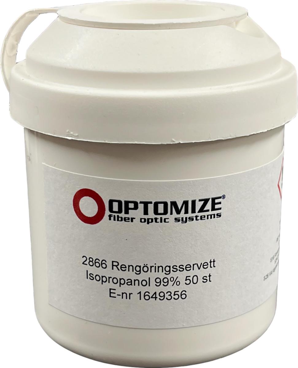 Förpackning med 50st rengöringsservetter Isopropanoldränkta för rengöring av fiber vid svetsning.