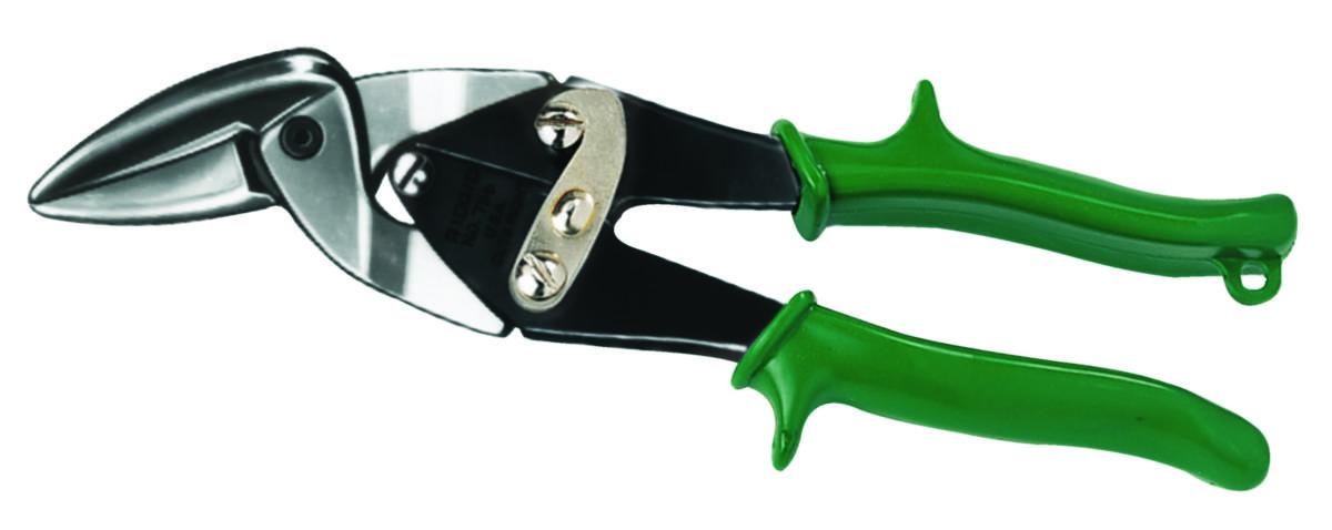 Plåtsax med förskjutning. Klipper 1,27 mm (18 gauge) eller lättare kallvalsad stålplåt. Utväxlingsfunktion. Gängad käftskruv gör det möjligt att rikta om bladen efter långvarig användning.