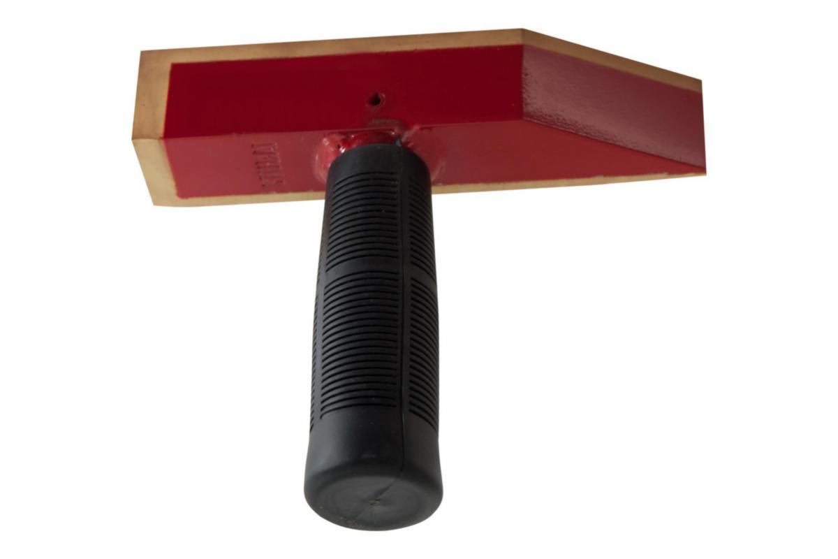 Plastbelagt knoster med rakt skaft. Med sned kant, stålskaft och gummihandtag.
