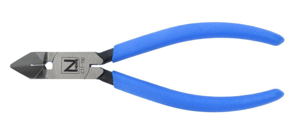 Dra åt buntbandet längst in i verktyget med den räfflade ytan, klipp därefter av buntbandet i den vinklade avbitaren. Avbitaren kommer åt så nära buntbandshuvudet att det inte blir kvar några vassa kanter. Används för buntband: 2.4-10.0 mm i bredd. Kan även användas för mångtrådig kopparkabel upp till 6mm2 eller solid ledare upp till 2.5mm2. Helsmidd i kolstål med polerade käftar. Halkskyddade soft-grip handtag i blått.