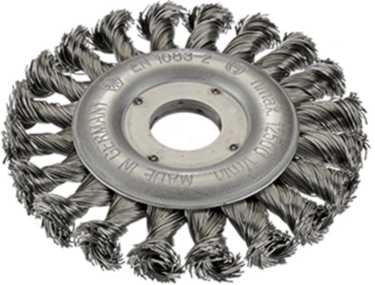 Virad cirkulärborste av hög kvalitet, för enkel montering på alla vanliga vinkelslipar. Högpresterande tråd utvecklad av Osborn. Särskilt kostnadseffektivt. Lång livslängd, hög draghållfasthet, hög brottstyrka och korta installations & ställtider. Tråden säkerställer att borsten slits jämnt. Tillämpning: Gradning, rengöring av svetsfogar (slagg, silikater, blå missfärgning), borttagning av envisa rostavlagringar.