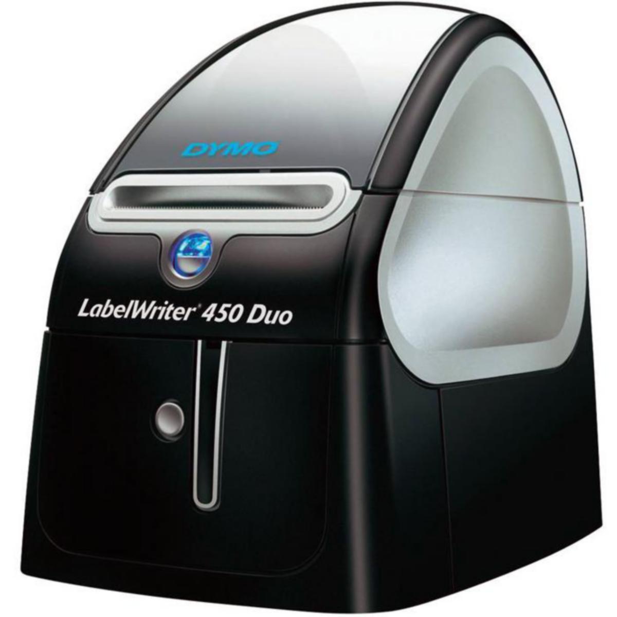 DYMO LabelWriter 450 Duo är vår mångsidigaste etikettskrivare, som skriver ut LW-etiketter, D1-plastetiketter och tåliga IND-etiketter för alla dina etiketteringsbehov. Skriv ut adress- eller namnetiketter med LW-etiketter och växla sedan enkelt till D1-etiketter för dina mappar. Anslut Duo-etikettskrivaren till din PC eller Mac för att skriva ut direkt från en rad populära program eller skapa anpassade etiketter med DYMO-etikettprogramvaran. Nu kan du hantera så gott som all etikettering med en enda mångsidig etikettskrivare.