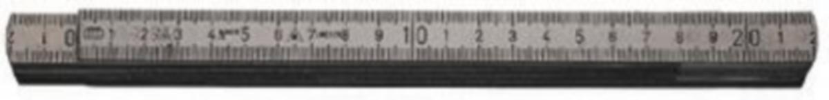 Eloxerad aluminium. Motståndskraftig mot vatten, värme och nötning. Diamanthårt ytskikt. Graderad på båda sidor med början från vardera änden. Bredd 15 mm. Tolerans enligt SS 64 11 14.