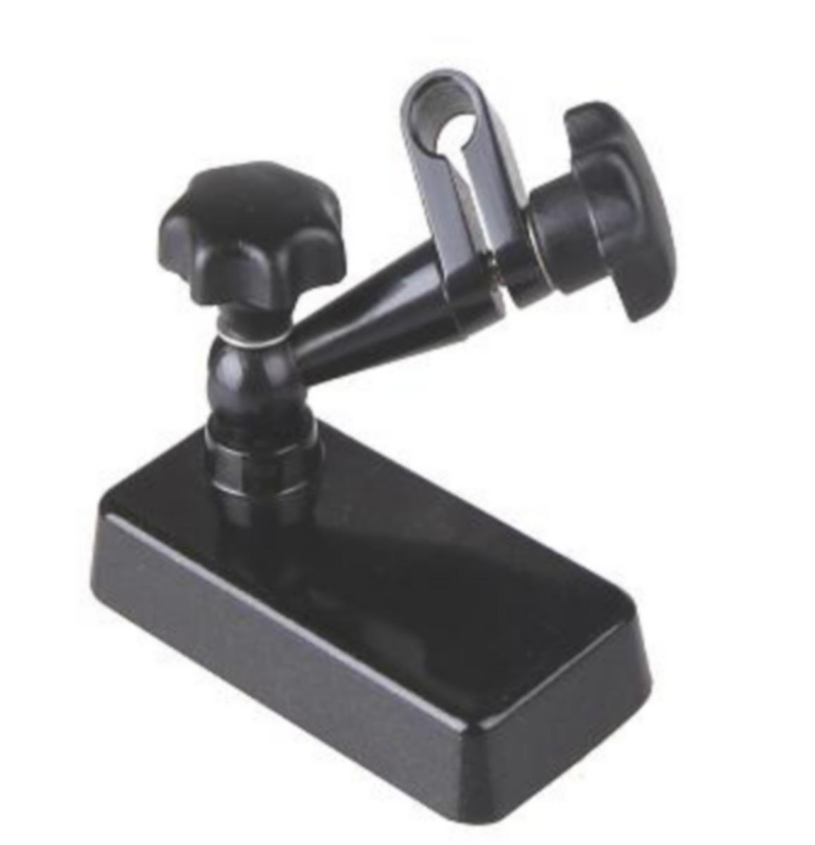 Litet magnetstativ för snabb montering av mätklocka på maskin eller skruvstycke. Tillverkad av lättmetall. Kapacitet: 20 kg. Dimensioner fot: 73x37x12 mm.