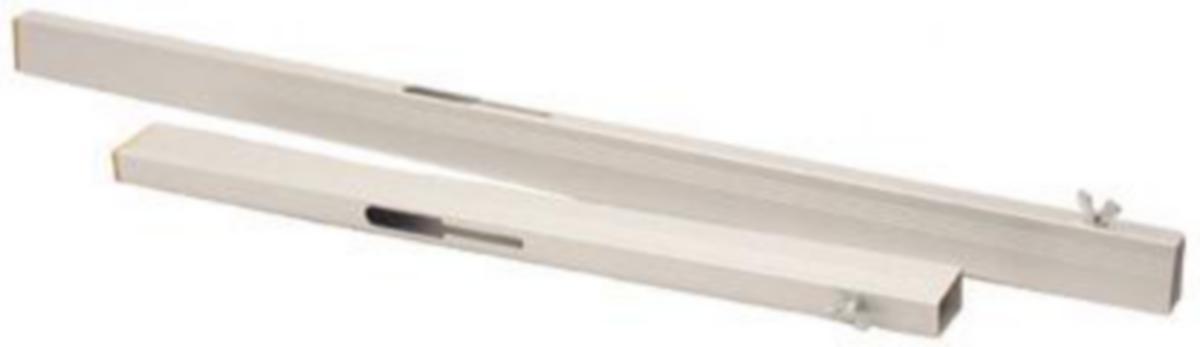 Ger ett utdragbart vattenpass. Systemet kan användas som stickmått vid t ex avvägning mellan golv och tak. Förlängningsskenorna kan, var för sig med huvuddelen tillkopplad, användas som kortare vattenpass. Av heldragen eloxerad aluminiumprofil. Skyddsplugg i ändarna. Levereras parvis 600 + 900 mm.