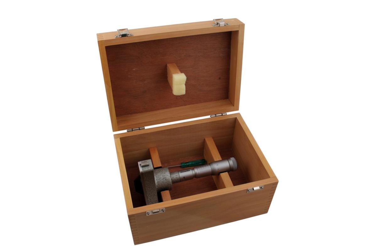 3-punkts mikrometer i rostfritt stål med mätområde 100-275 mm med matt förkromad design som ger bländningsfri avläsning. Mätytorna är belagda med hårdmetall och mättrumman har en tydlig svart skala och spärr. Kan användas för bottenhål. Avläsning: 0,01 mm. Levereras i trälåda utan kontrollring.