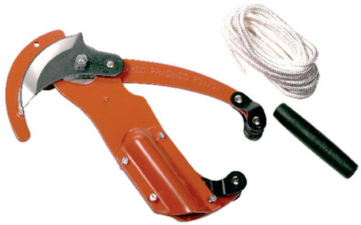 Precisionsslipat härdat skär försedd med savränna. Stansat mothåll i helhärdat stål. Med justerbar skafthylsa, 25-35mm. Utväxling i tre steg. Användes till beskärning från marknivå av högt sittande grenar. Utbytbart skär. 5m lina med handtag. Levereras utan skaft.