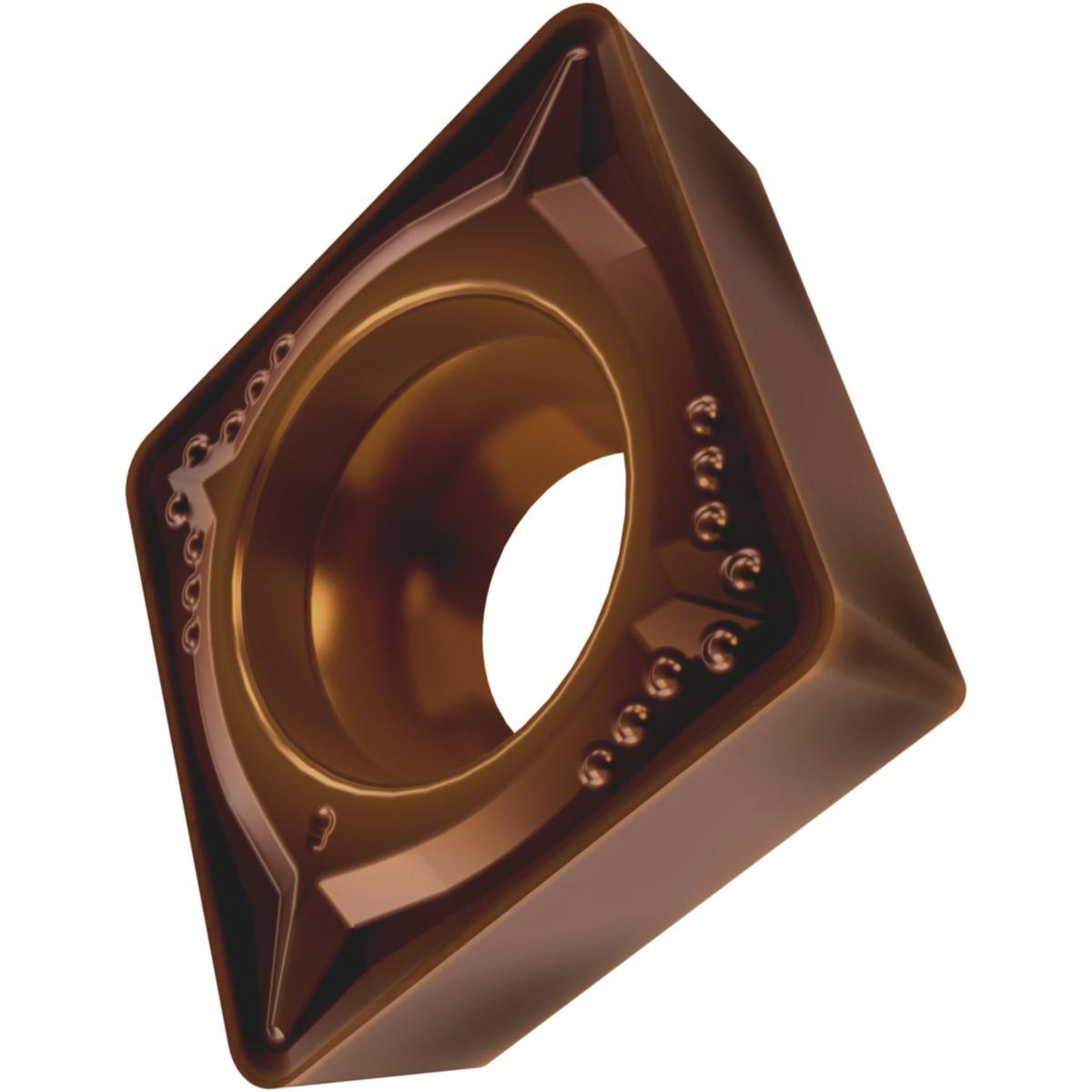 Enkelsidigt positivt svarvskär, 80° romb med 7° släppning, inskriven cirkel med diametern 9.525mm, 3.97mm tjock, 0.8mm nosradie, indexeringsnoggrannhet enligt ISO-toleransklass-M, spånbrytare FM med wiper-egg, i sort T8430, en PVD belagd finkornig WC-Co hårdmetall inom ISO-område P25-P40 och M20-M35, för fin till medel bearbetning av stål och rostfritt stål.