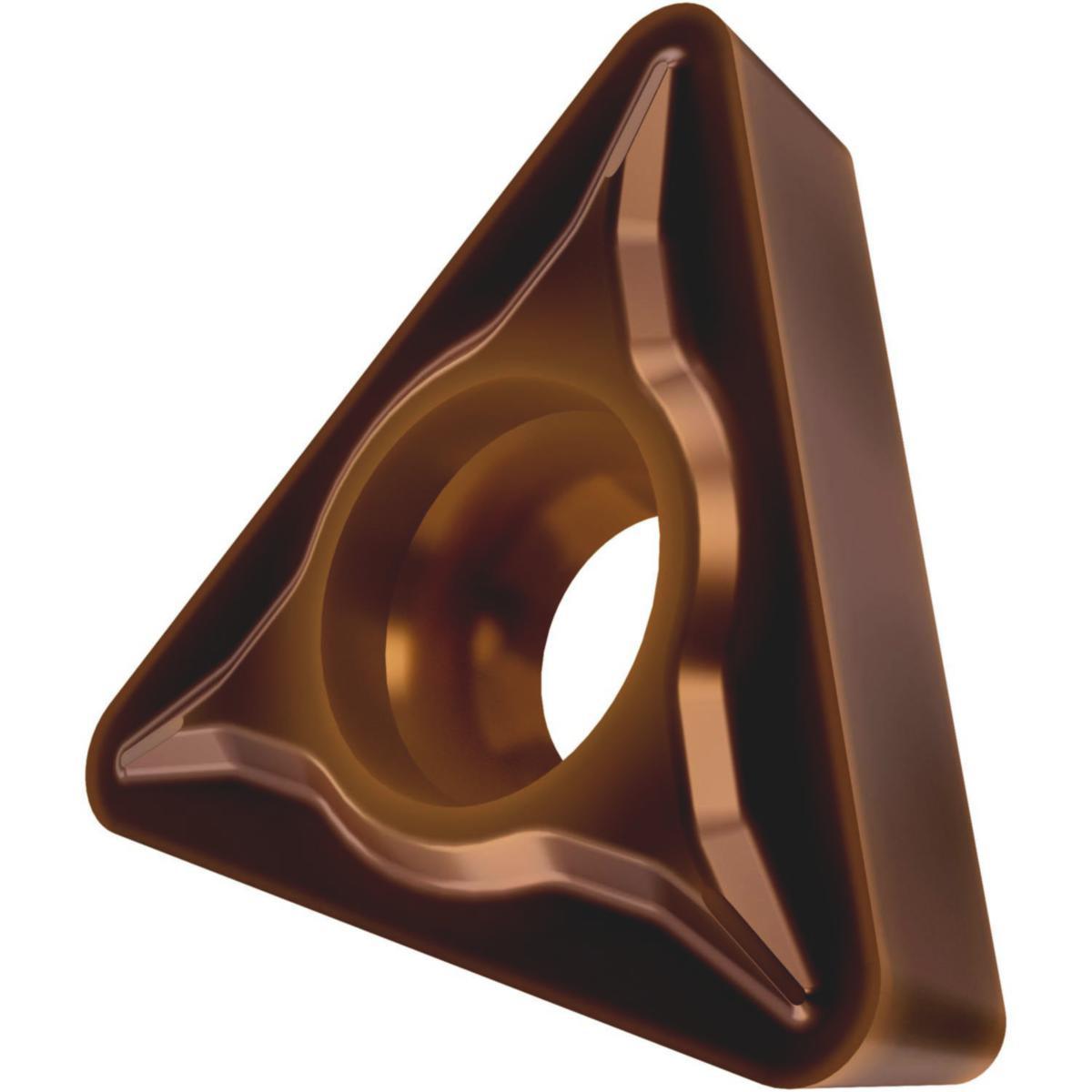 Enkelsidigt positivt svarvskär, trekantigt med 7° släppning, inskriven cirkel med diametern 3.97/5.56/6.35/9.525 mm, 1.98/2.38/3.97 mm tjock, 0.2/0.4/0.8 mm nosradie, indexeringsnoggrannhet enligt ISO-toleransklass-M, spånbrytare FF2 med rundad egg, i sort T8430, en PVD belagd finkornig WC-Co hårdmetall inom ISO-område P25-P40, för fin till medel bearbetning av stål.