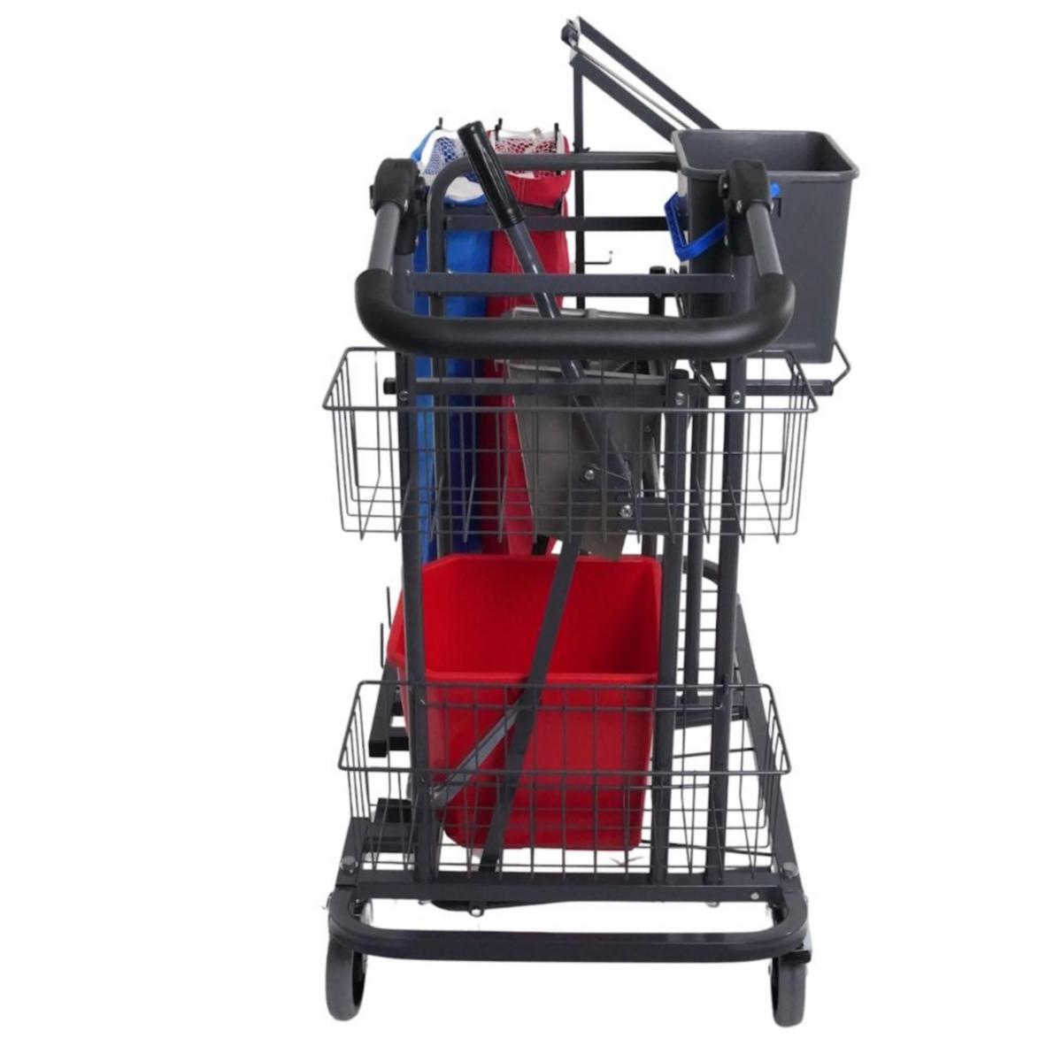 Vagnen är av hög kvalitet, robust och ergonomiskt utformad för moderna städmetoder. Vagnen bygger på flexibla lösningar som tillsammans ska underlätta det dagliga arbetet. Pressvagnen är utrustad med rostskyddad galvaniserad press i bekväm arbetshöjd. Manövreras med hand eller fot. Ställbart handtag.