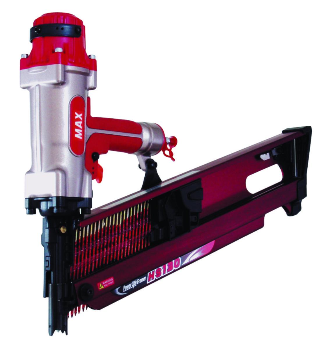 Spikpistol MAX HS130 är en pistol för rakbandad 21° 90–130 mm spik. Vikt 4,3 kg. Ett robust och välbalanserat 20 bars-verktyg med mycket kraft. Justerbart slagdjup. Spiklängd, 90–130 mm, Magasinkapacitet 64 spik. Avsedd för: Regelverk i bjälklag och väggar, Takbjälkar, Stommar, Fasader och panel och Golv.