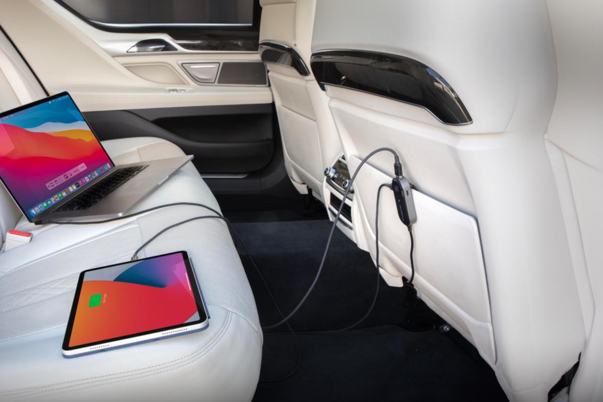 Ladda upp till sex enheter samtidigt. Var och en av de två 50 W-laddningshubbarna (fram och bak) erbjuder två USB-C-portar för snabbladdning och en USB-A-port. 1,5 meter lång anslutningskabel och klämma. Smart IC-teknik kommunicerar med varje ansluten enhet för att ge optimala laddningshastigheter. Fungerar med telefoner, surfplattor, handhållna spelenheter, kameror, hörlursfodral, bärbara datorer med mera.