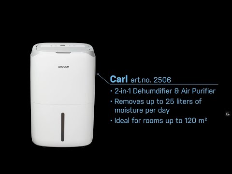 eeese Carl är en avfuktare som kombinerar en effektiv avfuktare med luftrening i HEPA-kvalitet. Med Carl bestämmer du själv när du vill använda avfuktningsfunktionen för att hålla en optimal luftfuktighet i din bostad eller om du kanske under en period bara vill använda luftreningsfunktionens HEPA-filter för att rena luften från besvärande partiklar. På så vis garanteras du det bästa inomhusklimatet året om.