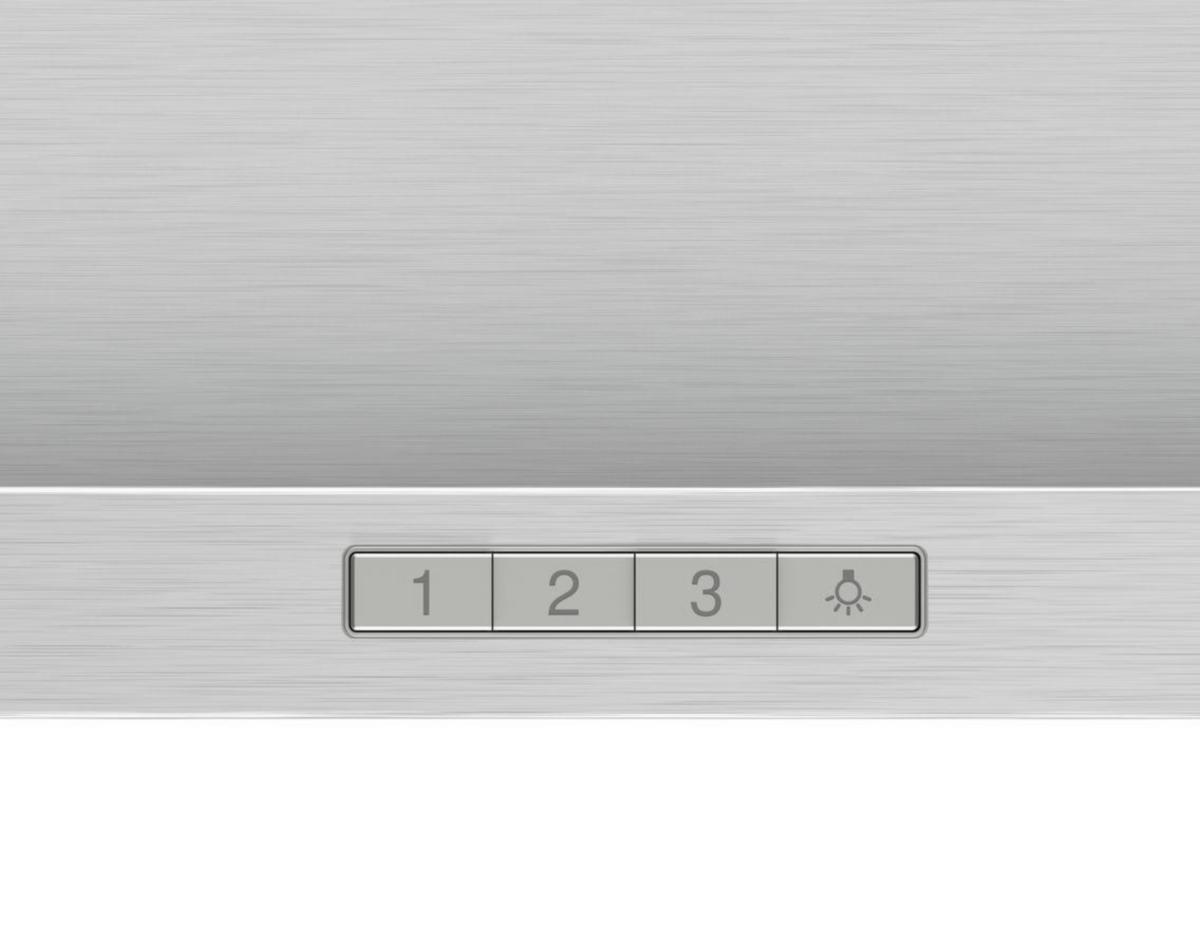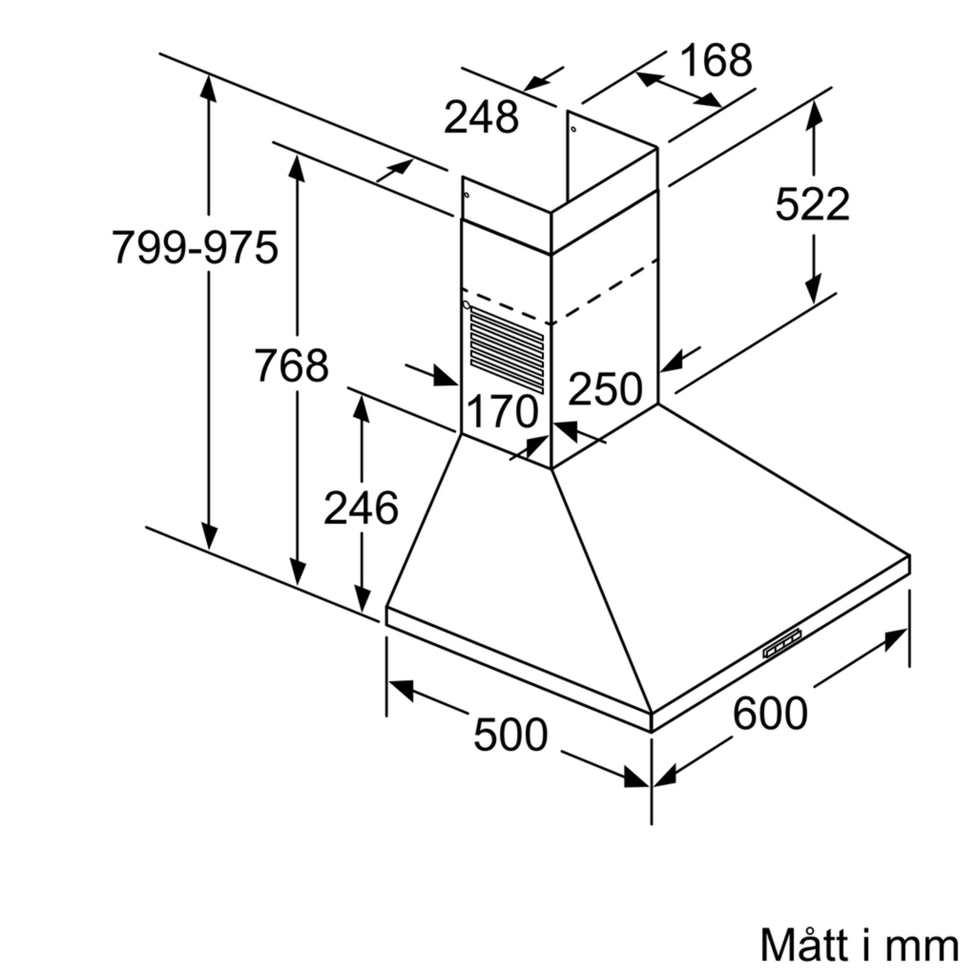Vägghängd fläktkåpa i rostfritt stål med tre hastigheter. Energisparande LED-lampor ger ett bra och behaglig ljus över hällen.