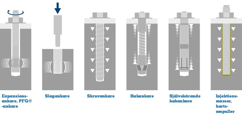 Kom ihåg att åtdragningen underlättas av att borrhålet har rätt storlek och är rätt för grundmaterialet!
