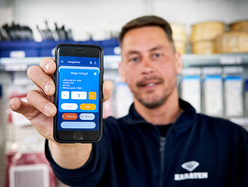 Med vår lösning för Förrådsdrift app och plattformen Ahlsell Storage använder du din smartphone eller en handdator för att registrera dina aktiviteter i förrådet. Väljer du den manuella driften bestämmer du själv när du vill fylla på ditt förråd. Med automatisk drift registrerar du dina uttag i appen och påfyllnadsorder skapas automatiskt vid förutbestämda parametrar. Som tillval kan vi erbjuda förvaringsskåp och förrådscontainers med lås som öppnas via vår förrådsapp.