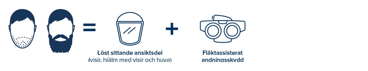 Har du skägg/skäggstubb så bör du använda ett fläktassisterat andningsskydd med löst sittande ansiktsdel.